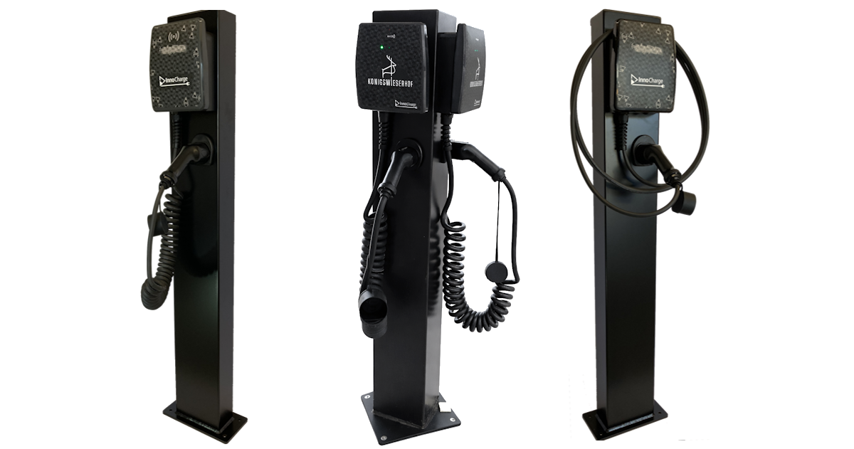 Effiziente, kompakte Wallbox-Ladestation „AdvancedCharger“ von InnoCharge mit integriertem Typ-2-Ladekabel. Für sicheres Laden deines Elektroautos zuhause oder am Arbeitsplatz. Schnell montiert, robust gebaut und perfekt kompatibel mit allen gängigen Elektrofahrzeugen.